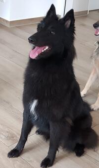 Mein Name ist Ebony und ich bin an der Hermann- Löns- Schule Schulhund. Ich gehöre zu Frau Wolff, sie ist mein Frauchen. Mit ihr habe ich gemeinsam die Schulhunde- Ausbildung gemacht. Jetzt üben wir beide für die Prüfung. Ich habe schon eine Begleithunde- Prüfung gemacht- Frauchen sagt, da war ich supergut! Im Moment gehe ich mit den Kindern der ersten Klassen gemeinsam lesen. Später komme ich auch in andere Unterrichtsstunden mit. Darauf freue ich mich auch schon sehr. Ich mag Kinder und bin immer gerne "mittendrin". Der ganze Trubel an der Schule macht mir gar nichts aus. Ich freue mich auf euch!!